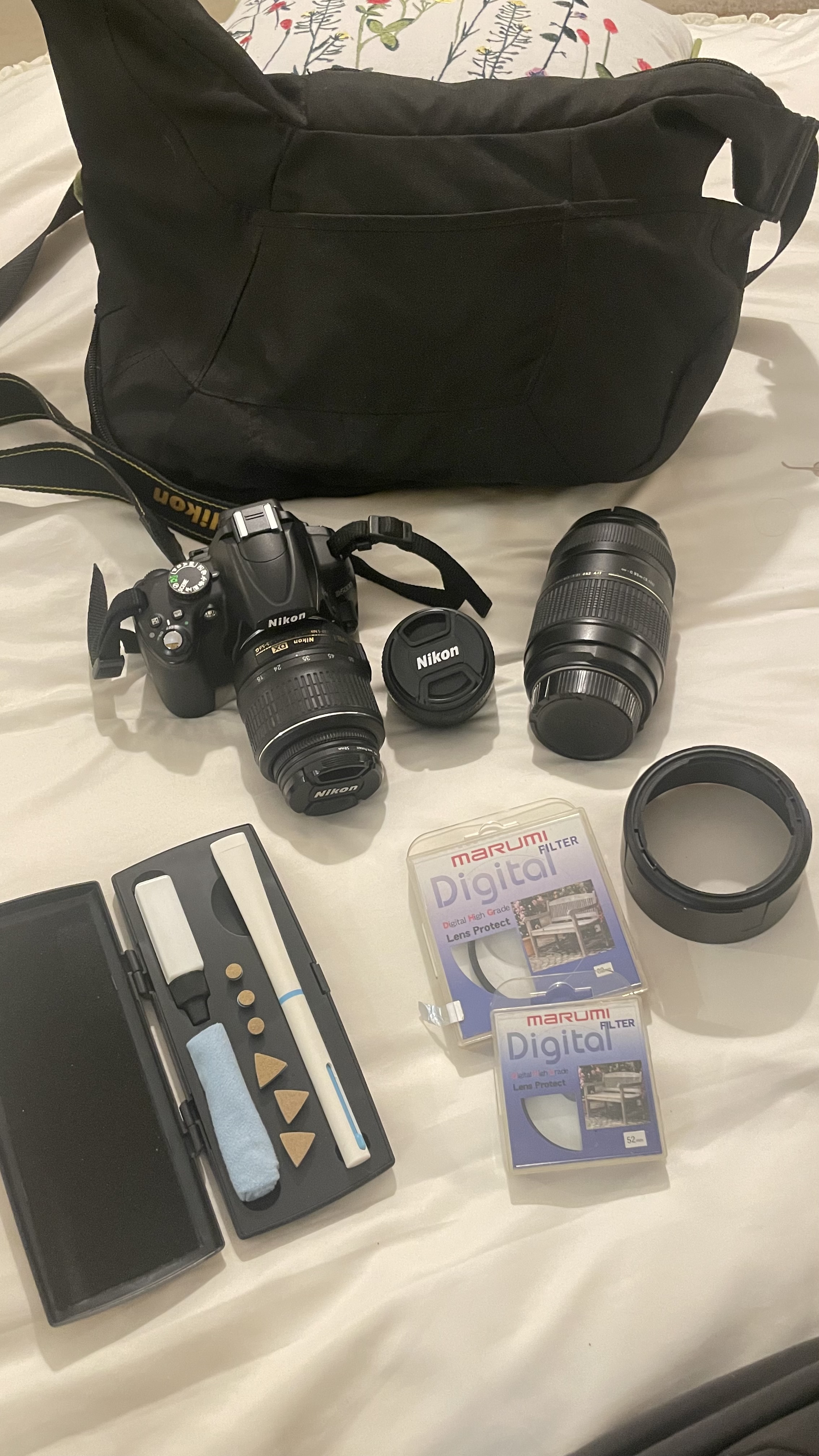 كاميرا نيكون نظيفه استخدام خفيف بحالة ممتازه مع جميع ملحقاتها وعدستين نيكون اضافيتين المواصفات :- كاميرا Nikon D5000 مع عدسة 55-18 عدسة تامرون ماكرو 300 مم - 70 عدسة تكبير عدسة نيكون تلقائية التركيز من نيكون 50 ملم مع عدد 2 فلتر وريموت تحكم